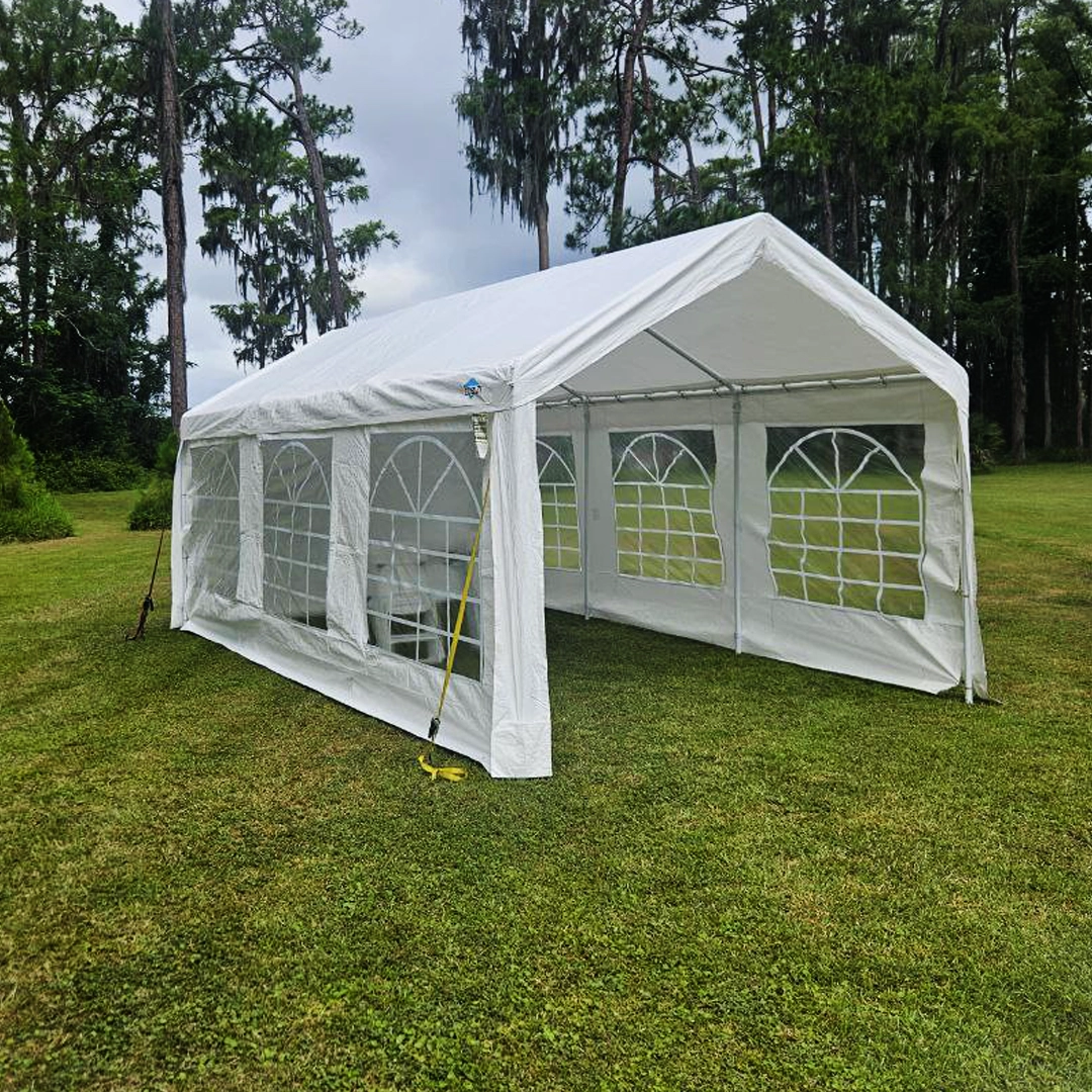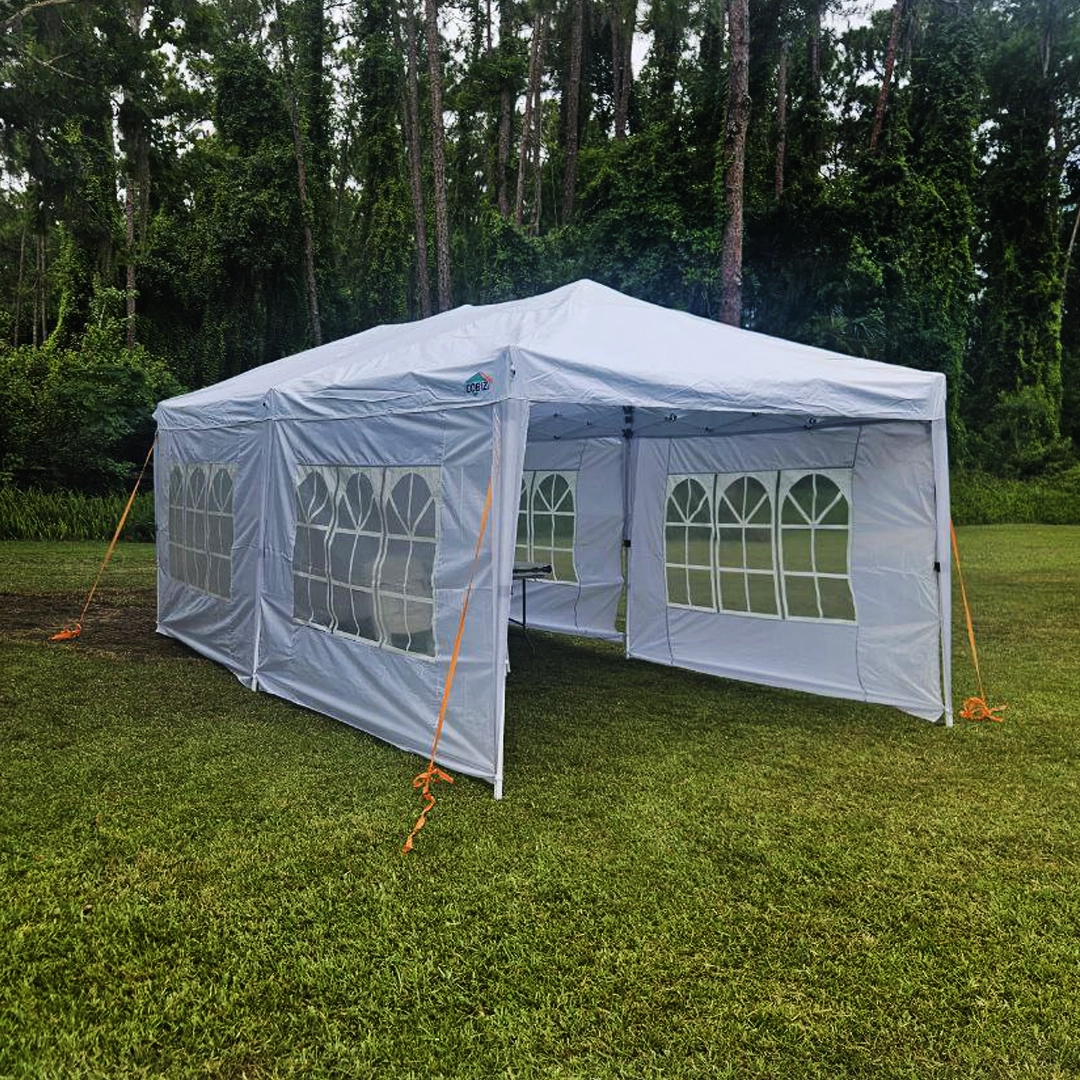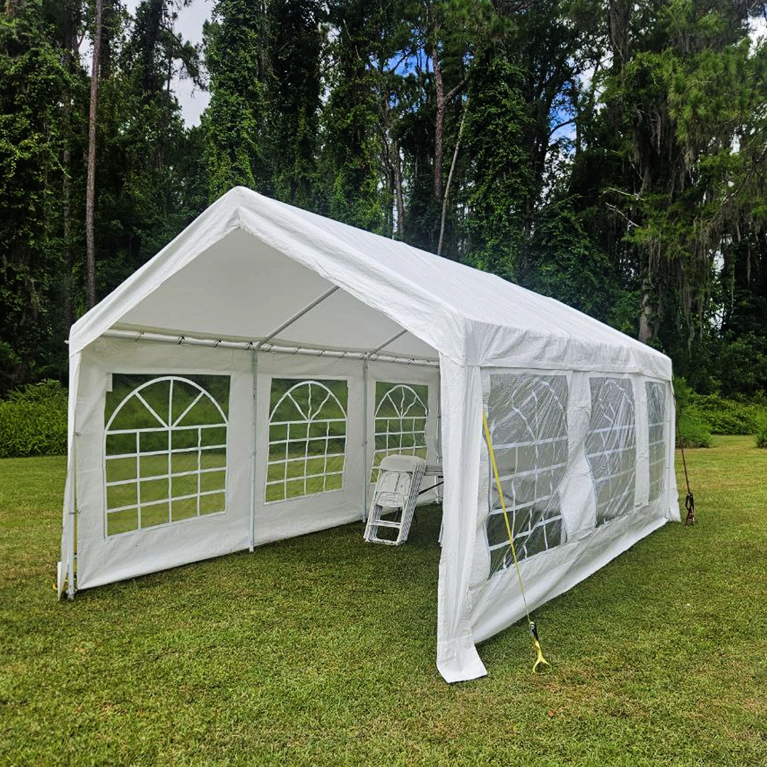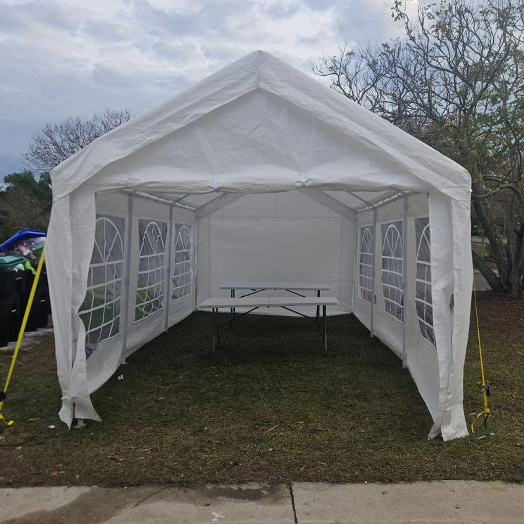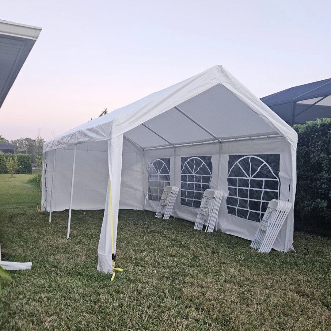 This 10×20 ft tent is great for small outdoor gatherings. It fits up to 20–30 guests and includes 3 sidewalls, offering reliable protection from sun, wind, and light rain. Ideal for backyards, baby showers, or family get-togethers.
