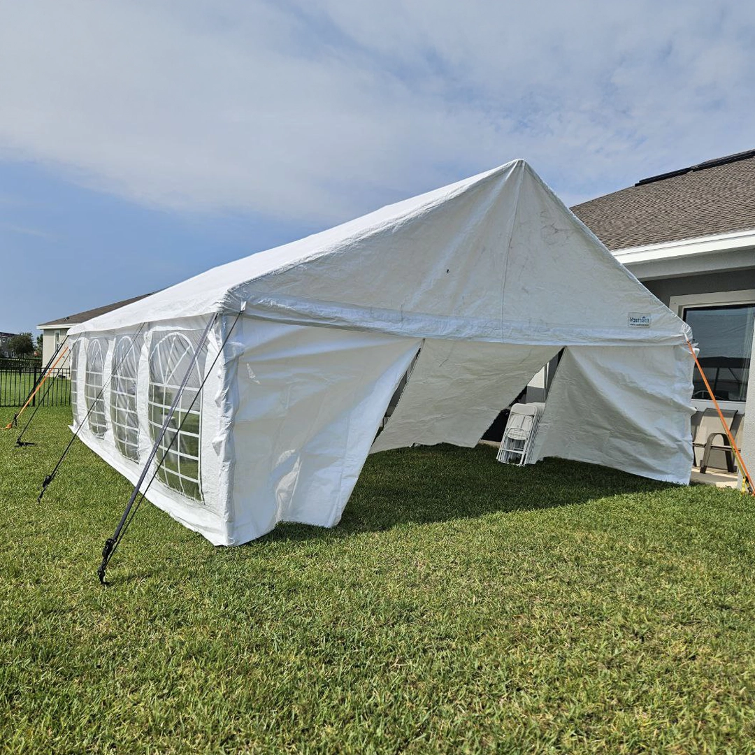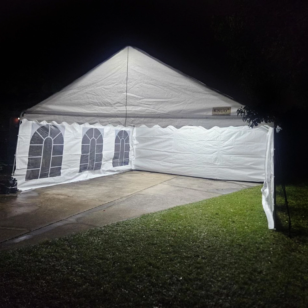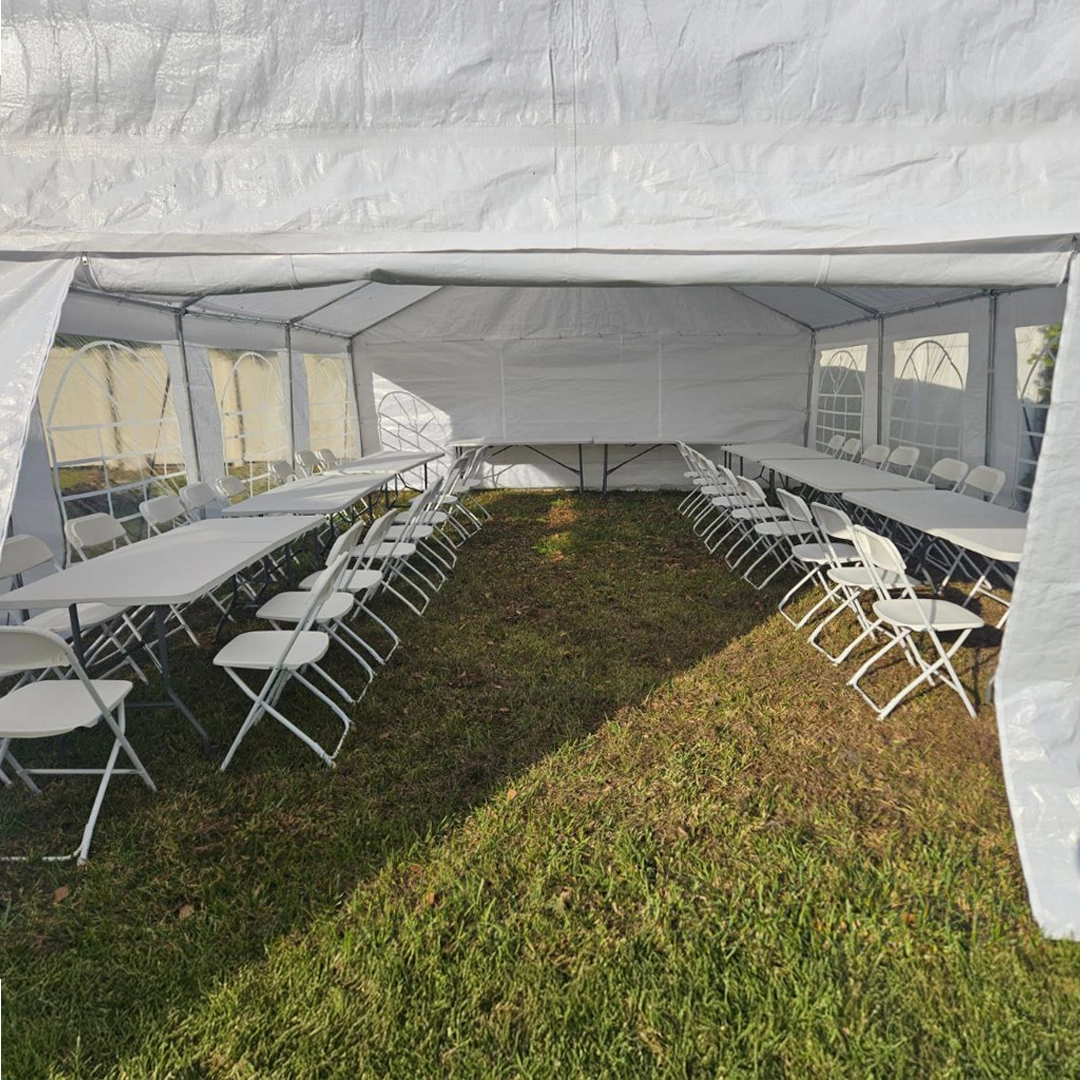 This 20×20 ft tent is the ideal choice for your celebrations, comfortably accommodating 40 to 50 guests. It offers a stylish and protective space for birthdays, parties, and gatherings.
